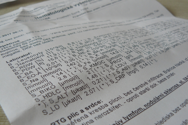 Rentgenová procedůra proběhla rychle, asi mám štěstí, že kam přijdu, tam mě hned táhnou do dveří. Ještě štěstí, že jsem tam byla tak brzy, neb sotva jsem vylezla zpátky na chodbu, už tam seděla pěkná řádka lidí. Dál už se nic super zajímavého nedělo. Tradičně jsem posnídala v čekárně hematologického stacionáře, přečetla si kus časopisu, povykládala si s panem doktorem o životě, o bylinkách, o zahrádce, o světě. Vzhledem k ne moc povedenému startu roku 2017 jsem byla vděčná za lehká témata rozhovoru a čisté výsledky jak krve, tak rentgenu. Souhlasila jsem s prodloužením intervalu mezi kontrolami ze 4 na 6 měsíců a cítila se díky tomuto "povýšení" jako velká holka. :) Ještě aby ne, vždyť už to jsou skoro 4 roky od diagnózy, to to letí. Šla jsem domů spokojená se svými výsledky a přistihla se, jak už to všechno pomalu beru jako samozřejmost.