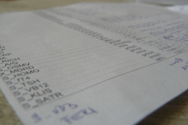 Díky tomu, že jsem pod pravidelným dohledem hematologie, využívám ke svým každoročním testům vždy první hematologickou kontrolu v roce. Pěkně se mi to pamatuje a mám tak vyřešené dvě mouchy jednou ranou. Slyšeli jste totiž, jak nesnáším jehly a odběry krve, že? :) Sepsala jsem si všechny bonusové testy na papírek velikosti vizitky a nosím ho neustále v peněžence. Při odběrech ho vytáhnu, dám sestřičce, zamrkám jako kocourek ze Shreka a už mi to tam hezky všechno píše na žádanku. Je dobré si dopředu zjistit na stránkách nemocnice nebo laboratoře, kde vám testy budou dělat, jaké rozbory mají vůbec v nabídce. Některé mají totiž více názvů a tak se mi stalo, že při vyslovení přání o provedení testu na holotranskobalamin sestřička řekla, že ho pravděpodobně nedělají (mají na to tuším nějaké zaškrtávací tabulky na žádance) a já jsem pak až o několik měsíců později zjistila, že ho v nabídce mají, ale pod názvem aktivní vitamin B12 v séru. Ale kdo ví, třeba je to opravdu nějaký super nadstandard.