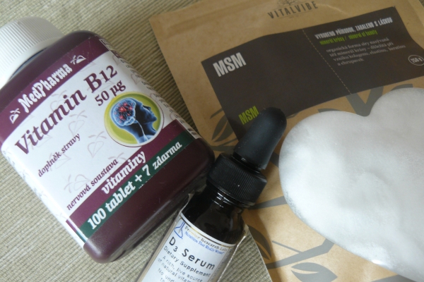 A jak to tedy dělám já? Už jsem v textu zmínila, že pravidelně suplementuju vitamín B12. Přes zimu jsem začala užívat vitamín D3, ve kterém prozatím pokračuju, ale hned jak bude venku na krátký rukáv, schovám ho asi do šuplíku a vytáhnu zase až v zimě. Posledním doplňkem v mém denním repertoáru je přírodní MSM prášek (organická forma síry), který užívám především pro podporu tvorby kolagenu, elastinu, keratinu a chrupavek. Ne nadarmo se mu říká minerál krásy a tak mám díky němu navíc jako bonus pevnější, hustší a lesklejší vlasy i nehty. A taky rostou jako z vody. :) Ostatní látky si zvládám dodávat ve stravě. A co doplňujete vy? Budu moc ráda, když mě doplníte!