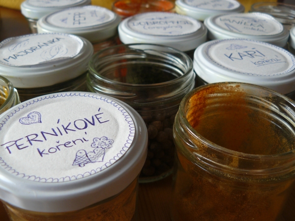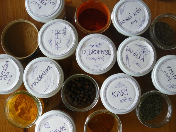 *Skleničky a polepy nejsou původní, ty jsou DIY a to proto, že se mi s nimi rychleji pracuje, než s originálními obaly Sonnentor. Ty však mají také překrásné balení A v horní levé části můžete vidět plechovku bez víčka s mou oblíbenou cejlonskou skořicí :)