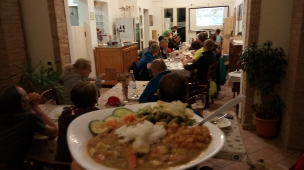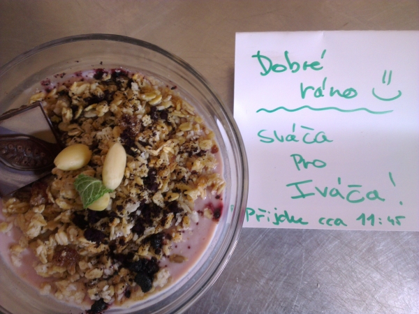 "Od minulého příspěvku jste mi psali, ať nezapomínám odpočívat a trošku se šetřím. Nebojte, jsem opatrná a myslím i na své zdraví, a tak jsem dneska ráno měla volno, pořádně se po několika dnech vyspala a když jsem v jednu přišla do kuchyně, čekalo tam na mě od "šéfa" Kuby tohle milé překvapení :) No mám se tady královsky, co vám budu povídat. Starají se tu o mě kluci opravdu jako o princeznu! A protože jsme byli plní sil, odpočatí a kluci trénovali na Elbě, měli jsme dost času nachystat parádní hostinu na večer. Tři druhy kari, luxusní rajskou, dva saláty, restovaná semínka, dva druhy rýže, naan placky, pickles a špenát s brokolicí na kumínu. Mňamka to byla obrovská a dokonce jsem vám stihla i zachytit dvě památeční fotky. Jedeme dál!"