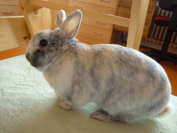 Povím vám dnes příběh ne o mravenci, ale o králíčkovi s takovým charakterem a neuvěřitelným životem, že by jeden žasnul. To se nás tak jednou v hodině fyziky na gymplu paní učitelka zeptala, jestli by si někdo třeba nechtěl vzít domů králíčka. Králičice s králíkem, které doma měla, totiž byli rychlejší než její plán kastrace a tak měla najednou několik malých chundelatých klubíček, která hledala nový domov. No to bylo něco na mě! Hned co jsem přišla domů, řekla jsem o mém nápadu o záchraně králíčka našim. No a protože byla ségra zrovna ve věku, kdy s ní bylo těžké pořízení, tak nějak jsme doufali, že když bude mít malé zvířátko, bude s ní kloudnější řeč. Slovo dalo slovo, odpřísáhly jsme, že se o něj budeme pěkně starat a já další den ve škole vybrala toho našeho, nezaměnitelného chlupáče. Věděla jsem, že bude vyjímečný hned na první pohled, však mrkněte, jak je zvláštně zabarvený. Koukal na mě a hned mě okouzlil. Ten bude náš!!!