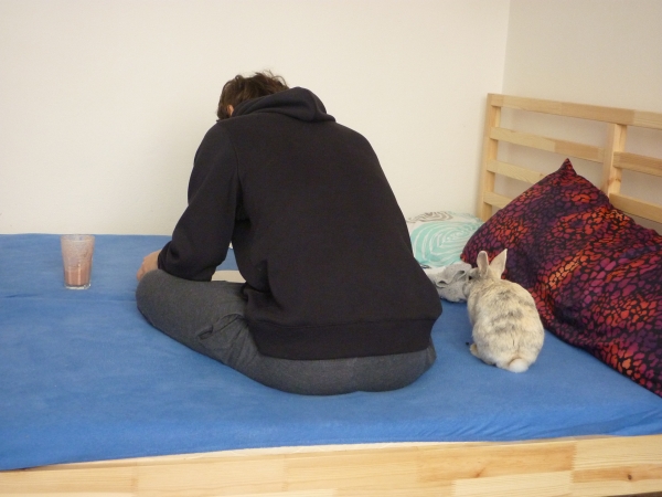 Pak už šel na Ferdovi věk poznal každý den víc a víc. Skákal čím dál méně, už neběhal jako torpédo, ale spíš jako raketa, později jako Usain Bolt a pak jako já na tréninku. Byl už z něho zasloužilý stařeček v králičím důchodu. No, on už byl spíš v králičí síni slávy za dlouhověkost. Beztak se pak držel zuby nehty jen proto, aby tu byl fakt co nejdýl a všem nám dokázal, že ta naše hypotéza o tom, jak bude mít ségra mazlíčka na pár roků, než ji přejde puberta, byla naprosto zcestná. Od letošní zimy už byl celý posmutnělý, jako by mu uletěly včely. Chladil si bolavou tlamičku o činku a byl rád za každý paprsek slunce, který dopadl na jeho hebký kožíšek. Už od mala si rád hrál na princeznu a zamotával se do záclon. Aspoň to mu ještě zůstalo. Jeho pohled z okna ven však už říkal, že na lepší zítřky sotva dohlédne. Začali jsme řešit, jak se k celé situaci postavíme.