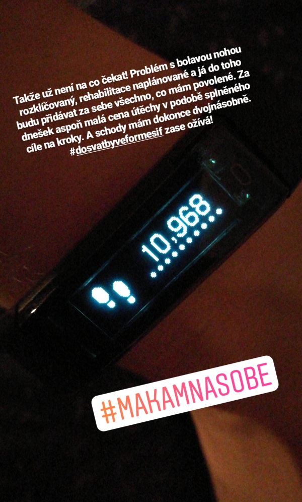 A tak, jak je už u mě zvykem, počáteční beznaděj vystřídalo odhodlání vybojovat si zase další kus svého zdraví. Výzva #dosvatbyveformesif tak najednou nabrala totálně jiný ráz, o kterém jsem měla v úmyslu napsat mnohem, mnohem dřív, ale chtělo to svůj čas. Začala jsem chodit pravidelně na rehabky, učit se znovu mechaniku pohybu vlastních dolních končetin a přepisovat to špatné, co se samy během té spousty let naučily, abych zastavila to, co jsem svou nedbalostí zapříčinila. Znovu jsem se učila došlap na chodidla, zátěže při cvičení s vlastní vahou a třeba i takový prachobyčejný dřep, díky kterému jsem pravděpodobně dopadla tak blbě. Doma jsem poctivě trénovala všechno to, co jsem měla z rehabilitací předepsané, do toho dál chodila naši kamarádskou výzvu #dopraceposchodech a taky nešla spát dřív, než mi na hodinkách svítilo aspoň 10 tisíc kroků. A ono to zafungovalo!