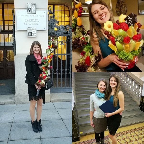 No a ta druhá paráda, ta je rozhodně majestátná. Moje mladší, avšak vyšší já, mělo promoce. Přivítali jsme tak do rodiny dalšího člena s Ing. před jménem, já byla totálně dojatá a bulila jak želva, div mi srdce hrudníkem nevyskočilo a prostě co vám budu povídat, ta moje ségra je prostě šikula veliká! A tak mi vlastně vůbec neva, že jsem nakonec k tomu Ing. já sama nedošla a jsem poslední z rodiny, kdo ho ještě nemá, protože pro mě je mnohem víc, že jsem mohla být u toho, když si tuto etapu prožívali brácha se ségrou. No. Doufám, že mě za tohle patetické okýnko pochválí. Už to vidim. :D