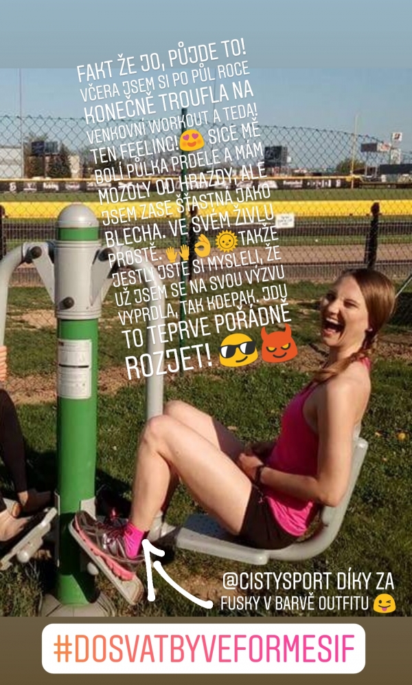 Ze cvičení se stala moje nová droga a já začala postupně zkoušet, co všechno moje nohy zvládnou. U našich jsem po několika letech protočila kolo, které brzy přivezu do Brna a po dvou týdnech jsem zkusila i zlehka pár metrů popoběhnout. Jo, jo, jo. Já vím. Dávám bacha, nebojte. Na běhání to ještě úplně není, ale už teď vím, že jsem se bála možná až zbytečně moc. Kyčle poslouchají, já naslouchám na oplátku jim a společně nám to jde opravdu parádně. Takže hlavičky, jsem zpátky v sedle a i když jsem už vůbec nevěřila tomu, že to tu někdy napíšu, musím zkonstatovat, že #dosvatbyveformesif frčí dál! Ono to dlouhé ticho nakonec mělo svůj smysl. A teď? Teď začne ta pravá bouřka! Tak stay tuned a brzo zase ahooooj. :)