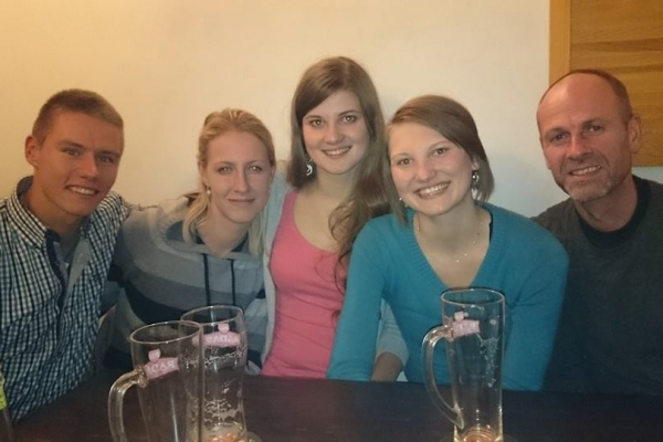 * Malá část týmu na pívu po sto letech i s trenérem.