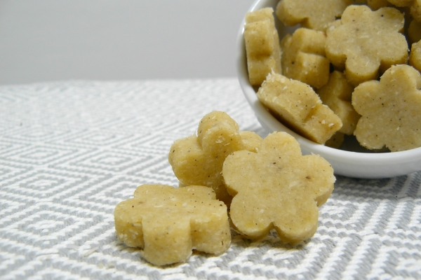 Když mě před několika lety čekaly první veganské Vánoce, už půl roku dopředu jsem věděla, jaké cukroví si připravím. Inspiraci na tyto citronové květinky jsem našla u Katy Blažčíkové, tehdá ještě na starém webu s recepty - veganza.cz. Určitě tam mrkněte, je plný úžasných jídel. Já jsem si recept lehce poupravila, aby cukroví lépe drželo v pokojové teplotě a bylo ještě citronovější. No a tady ho máte! Léty i strávníky ověřeno.