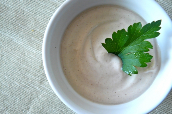 - Všechny suroviny vložte do mixéru a mixujte do hladké konzistence podobné majonéze.
