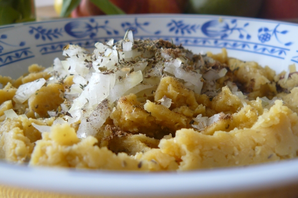- Do studené čočky přidejte nadrobno nasekanou půlku cibule, 1 čl soli, italské koření, mletý kmín, špetku pepře, 1 pl olivového oleje a důkladně promíchejte.