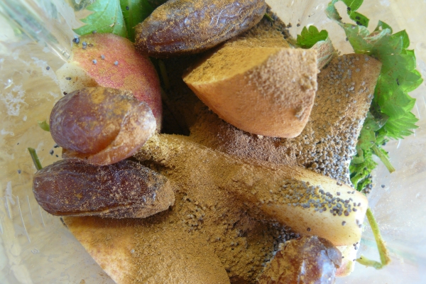 - Všechny suroviny dejte do mixéru, dolijte vodou do 500ml a rozmixujte.