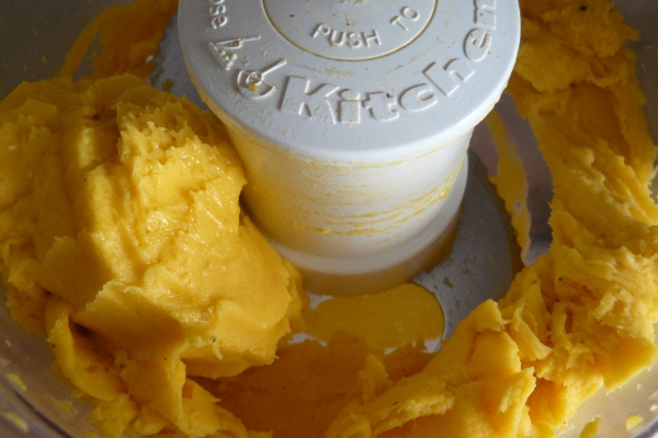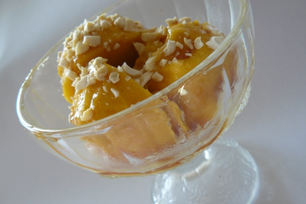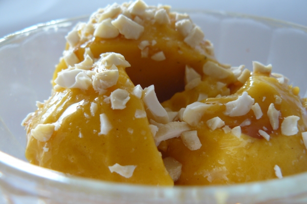 - Zmražené mango nechte trošku povolit a pak spolu s perníkovým kořením rozmixujte v mixéru nebo foodprocessoru na krémovou zmrzlinu.