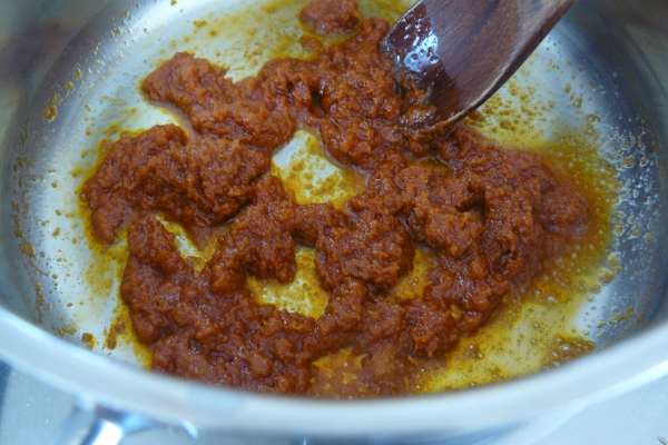 - V hrnci zahřejte na středním plameni curry pastu na oleji. Míchejte, dokud vám curry neprovoní celou kuchyň. :)