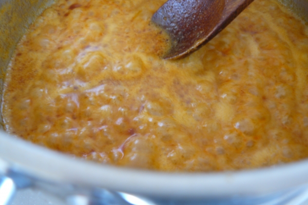 - Vaše výsledné curry by mělo být středně husté s trochou červeného oleje na hladině. Ten vzniká mícháním kokosového mléka s curry pastou.