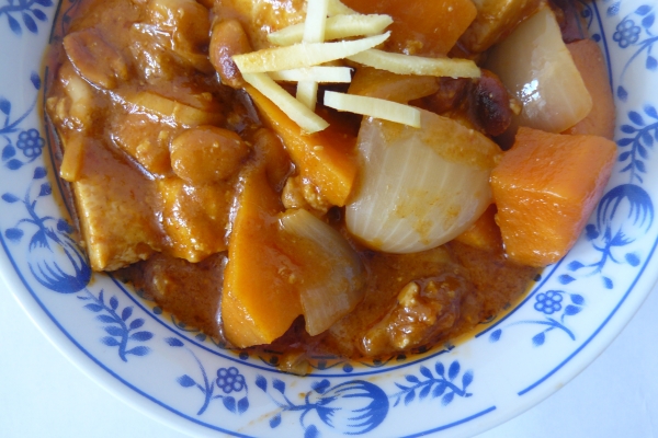 Toto curry je v Thajsku velmi oblíbené, nicméně jeho chuť je silně ovlivněna Indií. Díky tomu, že jeho rostlinná verze neobsahuje maso, připravuje se mnohem kratší dobu a vy tak můžete jíst do 30 minut od zapnutí sporáku. Jako každé curry, i toto chutná nejlépe druhý den, až když se rozvinou chutě koření. Já to ale nikdy nevydržím a jím ho často ještě z hrnce na plotně. :D Tajemství lahodné chuti curry je v postupném přidávání kokosového mléka ve třech fázích. Díky tomu má přirozený tuk v mléce dostatek času na promísení s kořením a bylinkami z curry pasty. Věřte mi, tohle se nedá srovnat, je to bomba!