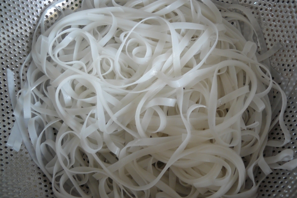 - Rýžové nudle namočte do lehce teplé vody na 15-20 minut. Čím déle budete nudle máčet, tím rychleji pak musíte jednat na pánvi při samotné přípravě.