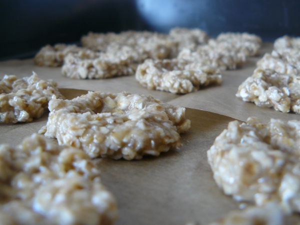 - Až bude hmota hezky lepkavá, tvořte malé hromádky na plech vyložený pečícím papírem a doprostřed každé hromádky udělejte důlek.