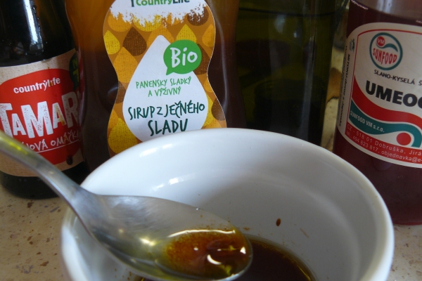 - Ochutnejte a případně upravte poměr chutí dle vlastních preferencí. S omáčkou shoyu bude zálivka jemnější, s tamari výraznější.
