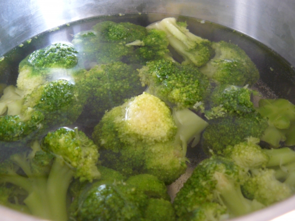 - Brokolici rozebereme na menší růžičky a také dáme vařit.